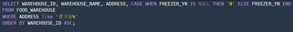 - like '경기도%': 주소가 경기도로 시작하는 모든 ADDRESS 출력