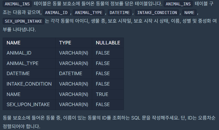 # 이름이 있는 동물의 아이디