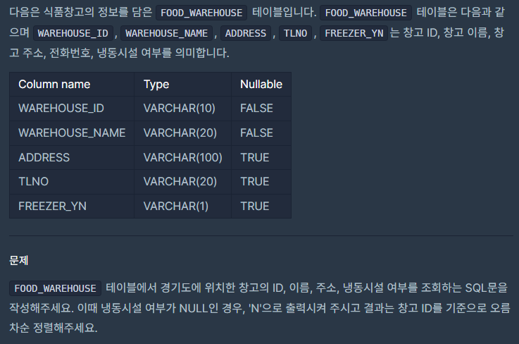 # 경기도에 위치한 식품창고 목록 출력하기
