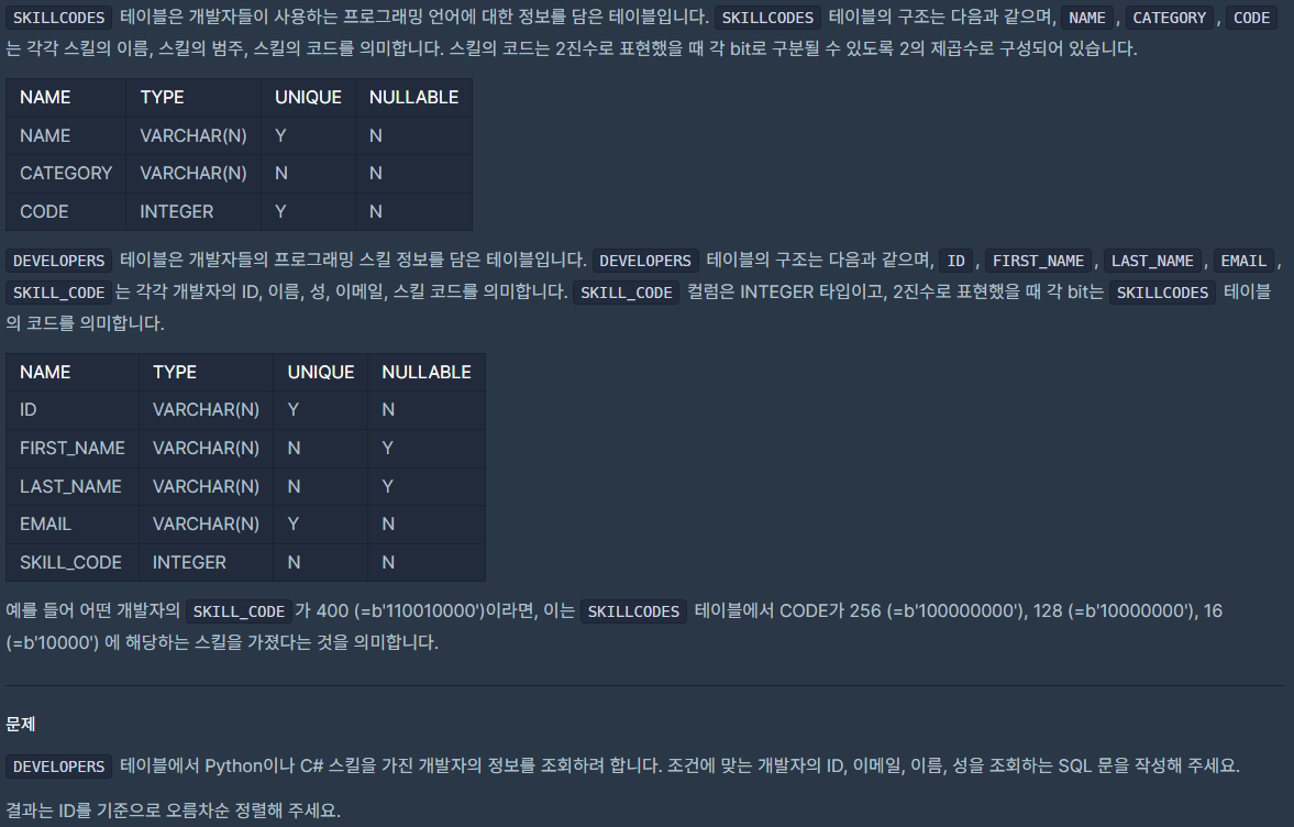 -- 결과: 0 (110010000 & 000000001 = 000000000)